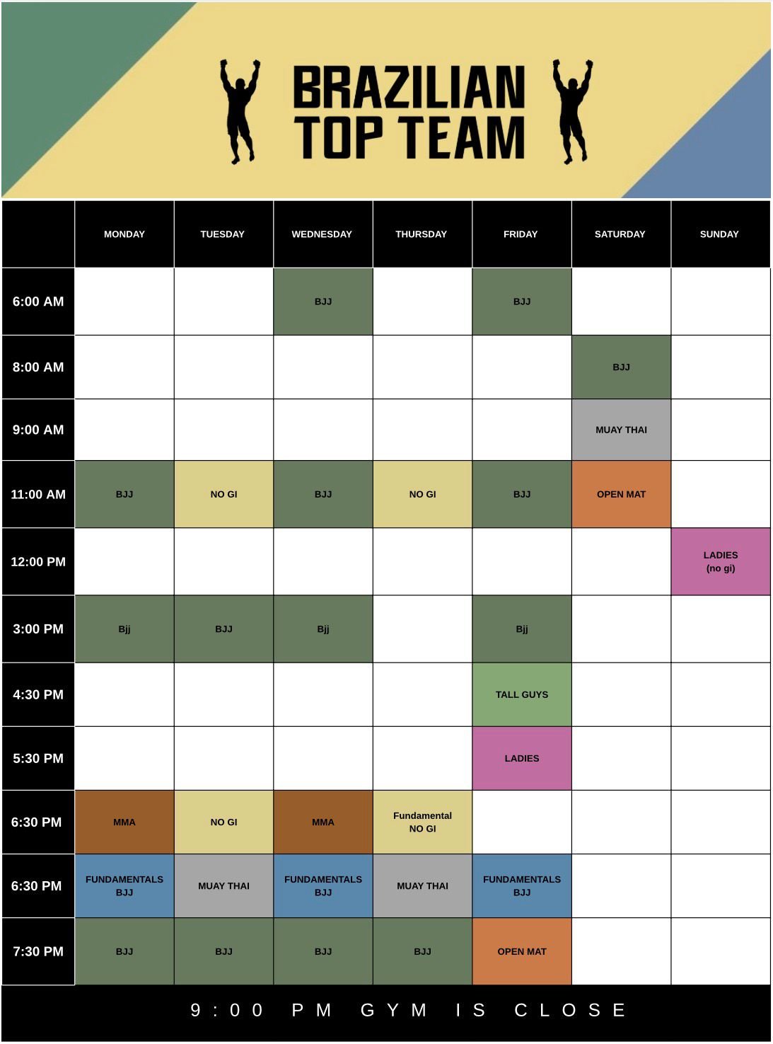 Brazilian Top Team of Long Beach offers you world-class Brazilian Jiu-Jitsu (BJJ), Muay Thai, and Mixed Martial Arts (MMA) instruction with a proven record of Competition, Lineage, and Tradition. High quality training partners, true team atmosphere, and the legendary lineage and tradition from Brazil continues here in Long Beach, CA.